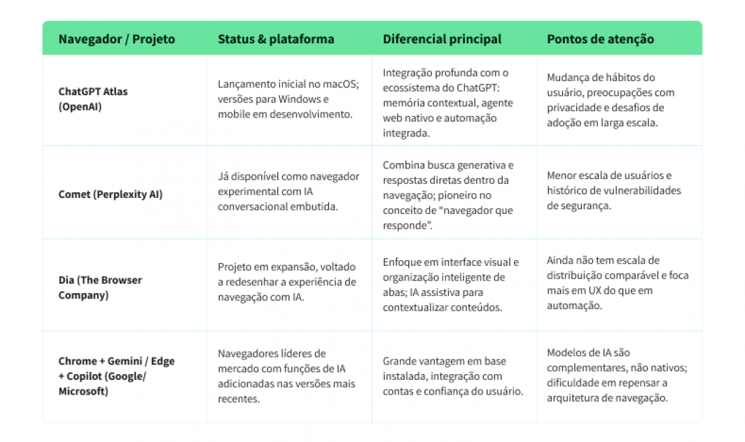 Cenário comparativo: Atlas vs outros navegadores IA